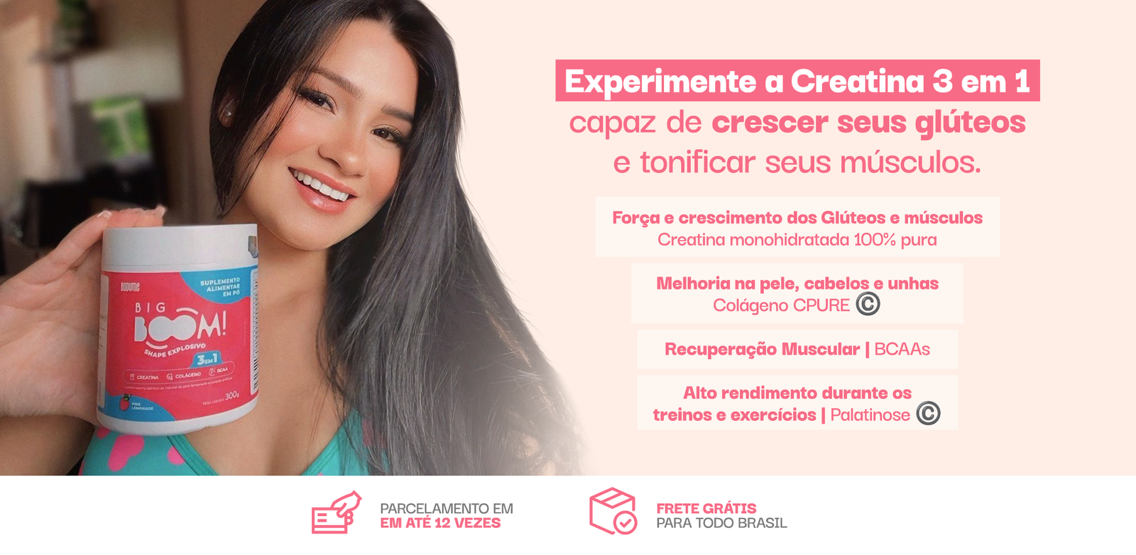 Big Boom tem a mesma quantidade de gramas de qualquer creatina convencional, 3G cada dose.